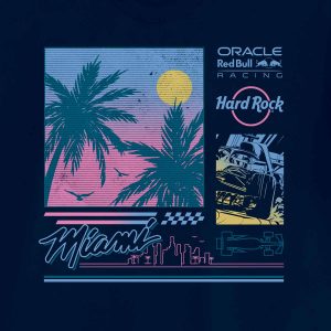Oracle Red Bull Racing Palm Tree Tee in Navy Imported 100% Cotton: Soft and breathable fabric for all-day comfort. Palm Tree Sunset Design: A unique blend of tropical vibes and F1 excitement. Navy Short Sleeve Crew Neck: Versatile style that pairs easily with any casual look. Care Instructions: Machine wash cold, inside out, with like…