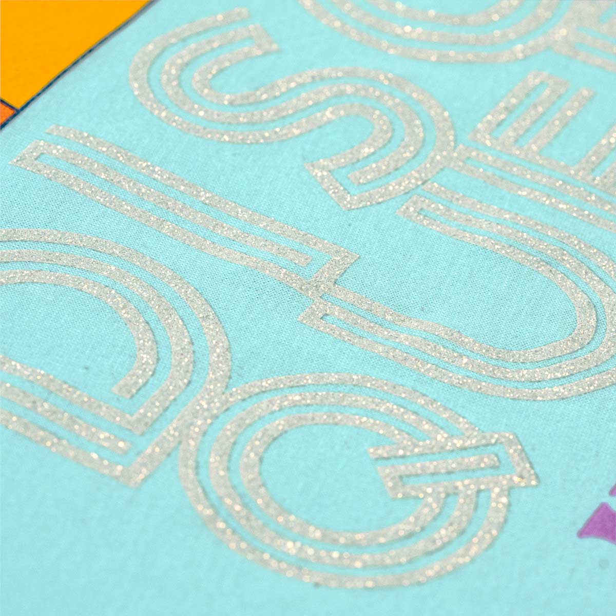 Disco Queen Ladies Fit Tee in Aqua Blue with Spectrum Design