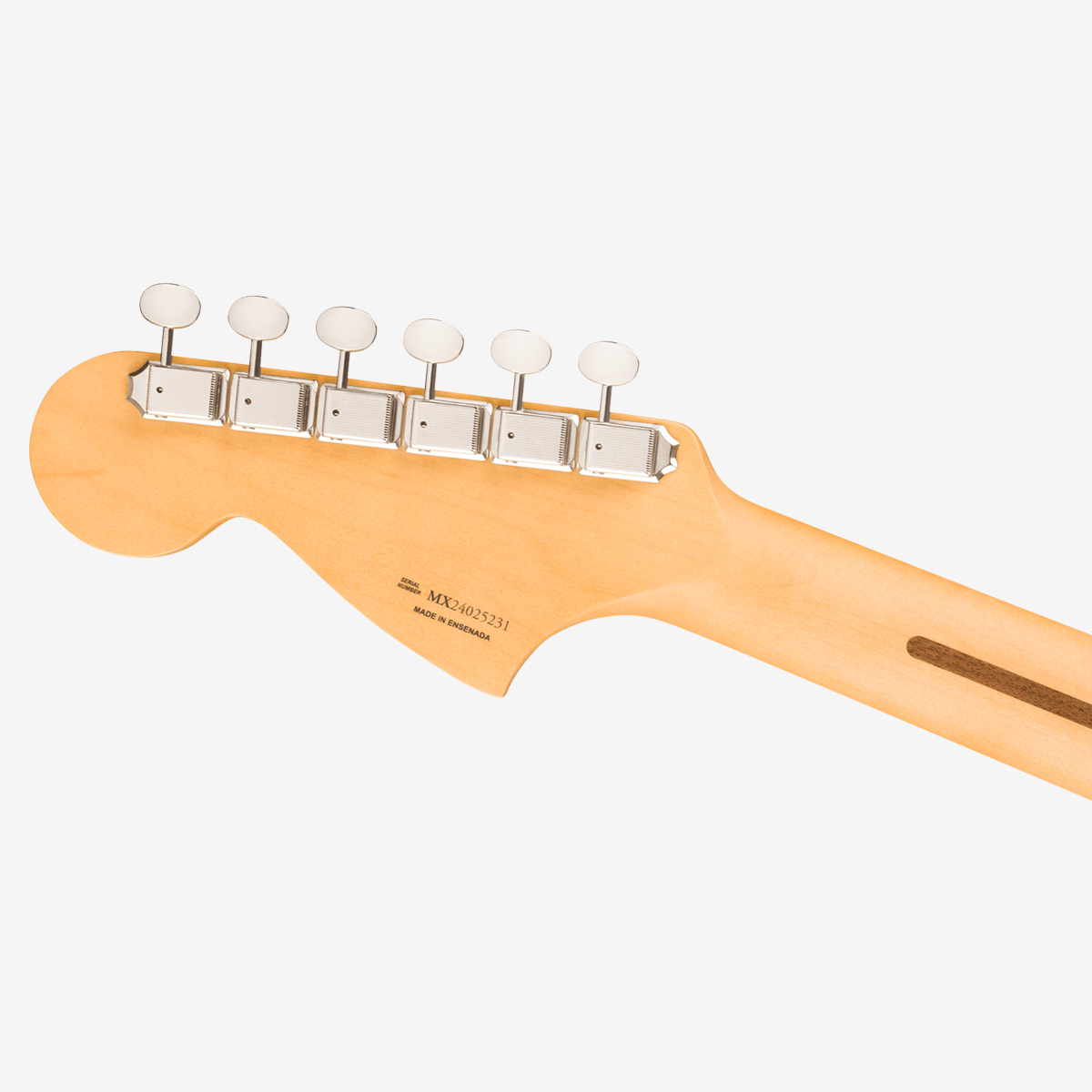 Fender Player II Jaguar Electic Guitar Coral Red Step into the spotlight with the Fender Player II Jaguar, a stage-ready guitar that blends iconic Fender sound with contemporary updates. This guitar features a contoured alder body and a modern "C" neck profile with a silky satin urethane finish, ensuring fast and fluid playability. The 9.5" radius rosewood fingerboard with rolled edges and 22 medium jumbo frets provide smooth playability. Equipped with Player Series Alnico V (Bridge) and Alnico II (Neck) single-coil Jaguar pickups, it delivers a wide range of tonal options. The Jaguar bridge with Mustang saddles and vintage-style floating tremolo tailpiece ensures precise tuning stability. ClassicGear™ tuning machines offer reliable performance, making this guitar perfect for crafting your own sound.