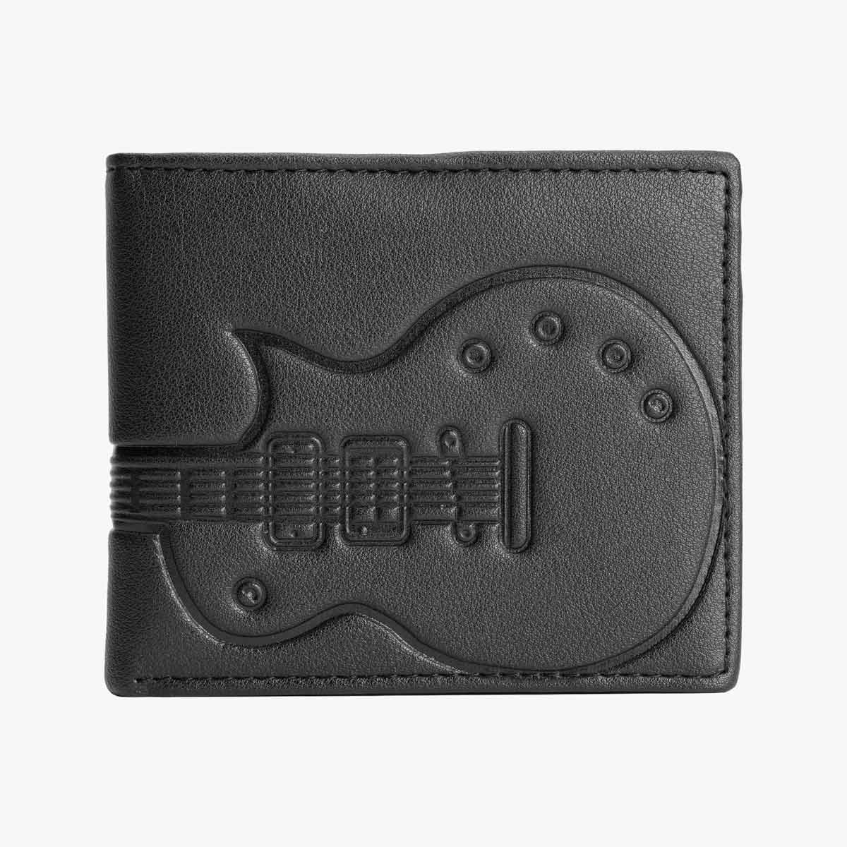 Hard Rock Watch Set with Guitar Wallet in Black Dedicated to all Hard Rock Fans. This set includes a one of a kind Hard Rock watch that is 35mm in size with a stainless steel case, white dial, contrasting dial markers and black vegan leather band. The set also includes a black vegan leather bifold wallet with an embossed electric guitar. Both come in a special giftable Hard Rock keepsake box.