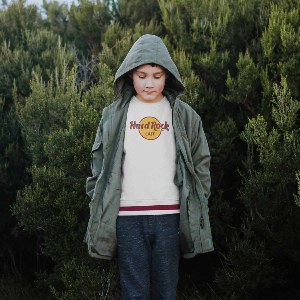 Hard Rock Youth Chenille Stitch Logo Longsleeve Tee An update to a classic. Our Youth Fit Retro Logo Crew Sweater in White is made of super soft cotton, fleece lined with our iconic 3D raised logo at the center, and dual thick crimson stripes along the cuffs and waist.