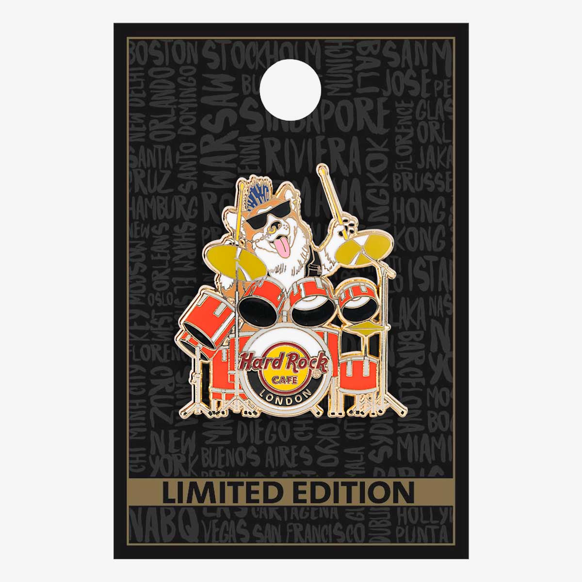 March to the beat of royalty with the Limited Edition Drummer Corgi Pin from Hard Rock Cafe London! This pin features a stylish corgi rocking out on a drum set, blending British charm with Hard Rock’s legendary musical spirit.