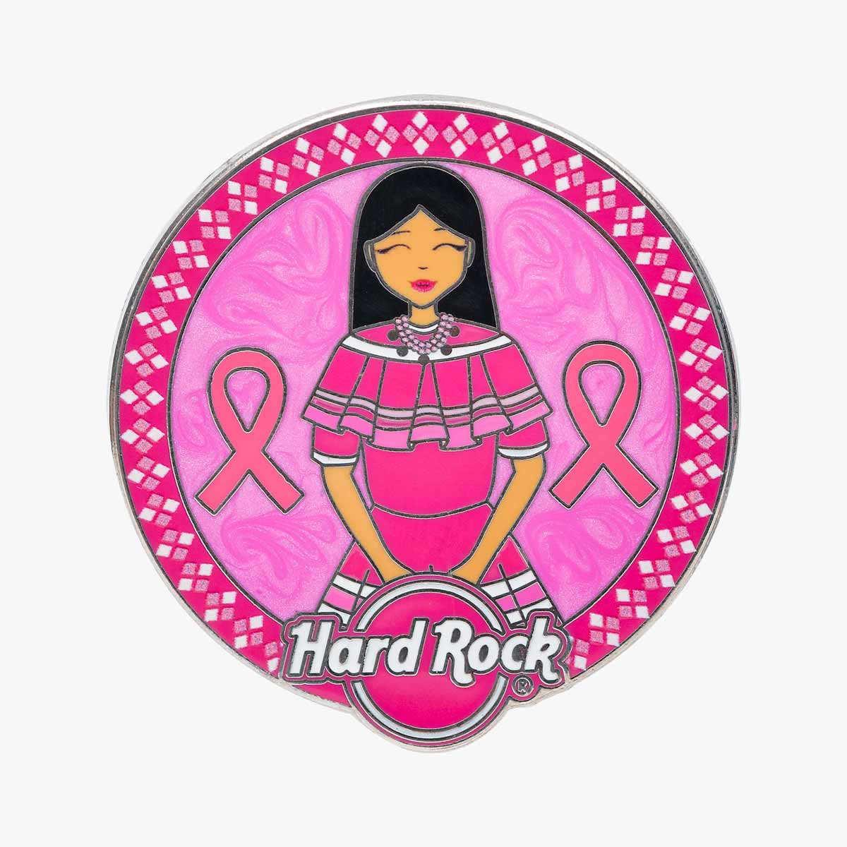 Enjoy rocking this Pinktober pin by celebrating survivors which features two ribbons representing Pinktober and your favorite city drop. Designed by Seminole artist Lauren Posada A portion of the retail price of each PINKTOBER product sold will be donated to the Hard Rock Heals Foundation to support awareness worldwide.
