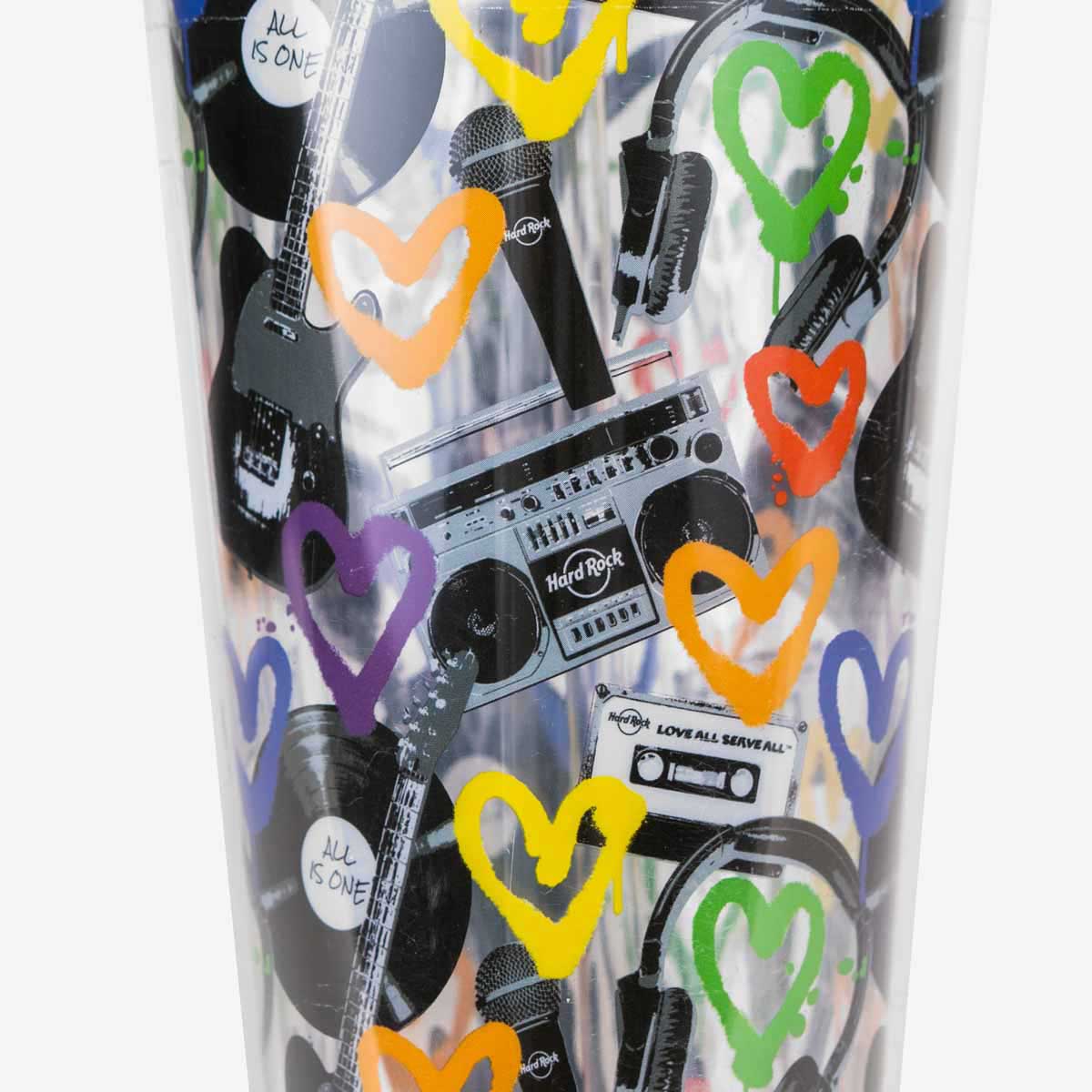 The Pride Allover Tumbler with Straw 22oz brings color, personality, and everyday good vibes to your favorite drinks. Wrapped in a vibrant mix of rainbow hearts, cassette tapes, and record players, this clear tumbler is all about showing support while staying refreshed. The double-wall design keeps your drink cool, and the reusable straw makes it easy to take on the go. Whether you’re heading to a Pride celebration or just want your cup to match your mood, this one’s got you covered. Part of our Pride Collection, it’s made to keep things fun, expressive, and proudly inclusive—one sip at a time.